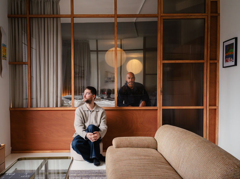 Appartement Okoumé Programme : création d'une chambre supplémentaire en verrière et peinture du parquet en blanc. Localisation : Paris Surface : 50m2 Photographe : studio ciao Le jeune couple propriétaire de ce 2 pièces typiquement parisien avait besoin d'une chambre supplémentaire pour accueillir un bébé. La verrière sépare le salon du nouvel espace nuit des parents. Un travail spécifique a été réalisé sur les parties vitrées pour amener légèreté et clair de jour. La porte en polycarbonate brun et le mur du fond en Dibon fumé apportent également contraste et profondeur à l'ensemble. Le lit se love dans une estrade à tiroir inspirée par l'architecture japonaise des petites espaces. Enfin, le parquet d'origine à fines lames a été poncé et peint en blanc pour amener de la légèreté et du contraste à l'ensemble.